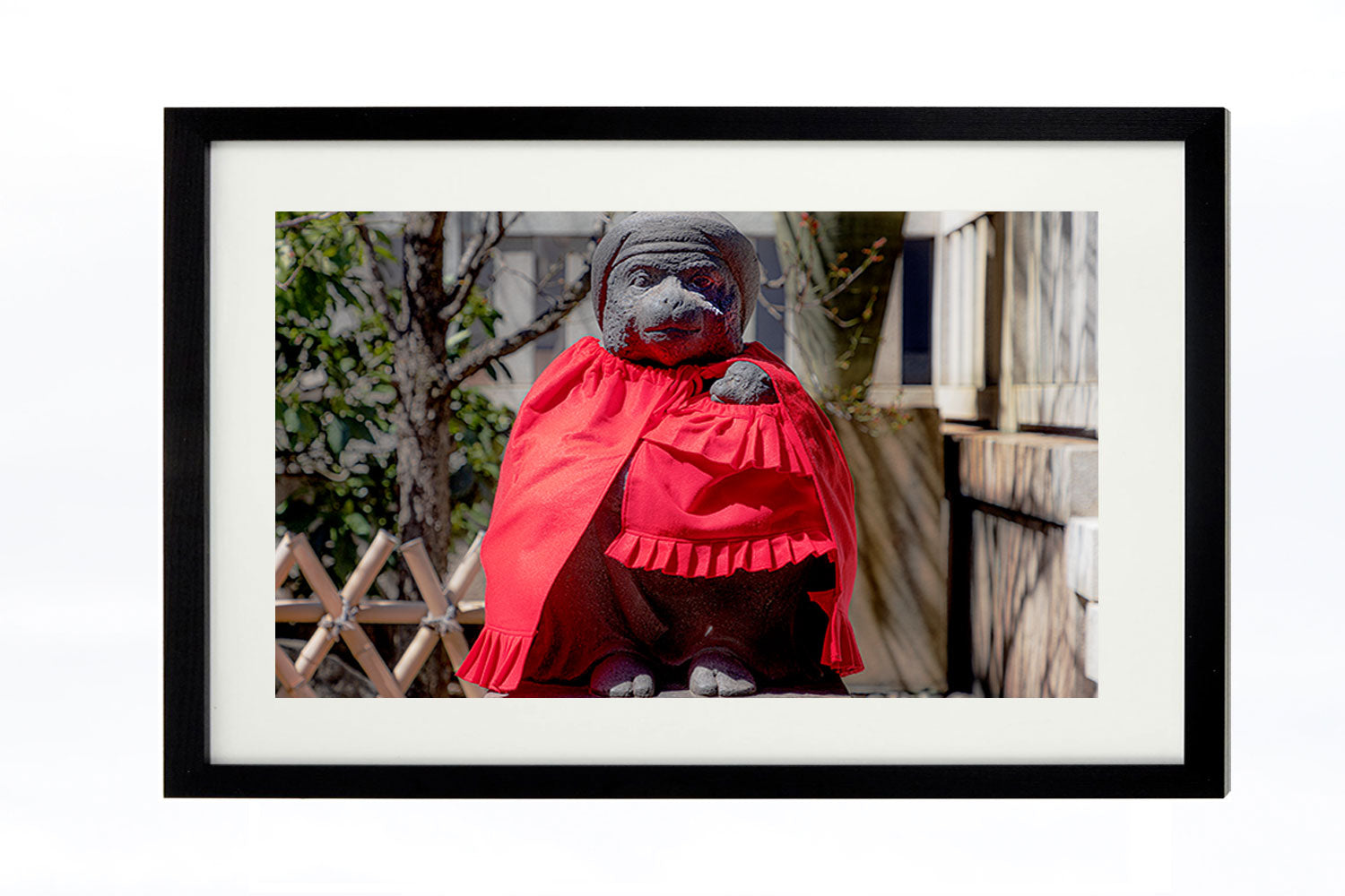 Foto im Rahmen, Motiv: Statue einer Affenmutter mit ihrem Baby im Hie Schrein in Tokyo